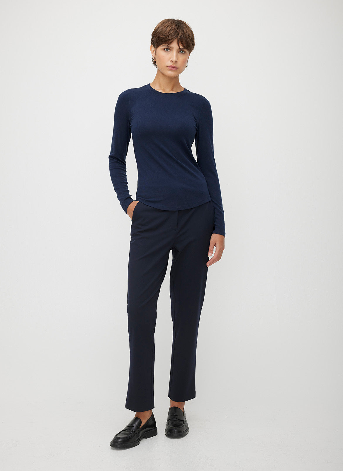 A classic and dependable long sleeve crewneck tee. Made from our ultra-soft Rib Tech fabric, this go-to style is lightweight and breathable for easy layering all season long. A classic fit finished with a curved hem makes this tee equal parts elevated and understated for comfort that doesn’t compromise on style.